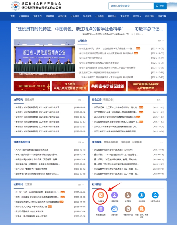 在浙江省哲学社会科学系统内提交结题申请。点击www.zjskw.gov.cn,进入大成集智系统。步骤请见