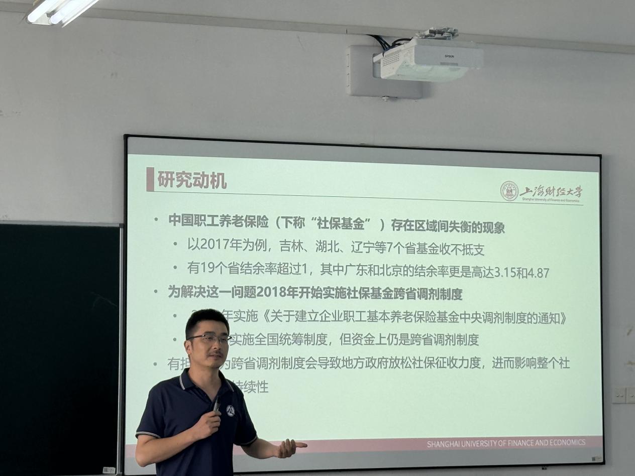 在李井奎教授简要开场后,讲座正式开始。唐老师基于《地方政府激励与社保改革效果:基于养老保险全国统筹制度设计的研究》这篇文章展开论述,其内容主要分为研究动机、主要发现、本文贡献、制度背景、识别策略、基本回归、稳健性检验、机制分析、进一步分析九个部分。本研究主要有三条发现,第一,跨省调剂制度使社保缴费率下降0.23个百分点,年均少征收超过1000亿。具体而言,信息不对称是放松征管的必要条件,而促进本地经济增长是放松征管的重要动机,从地区层面分析,无论是净调入地区还是净调出地区在政策实施后都放松了征收力度,此外,全国统筹制度对抑制放松征管的作用相对有限。第二,跨省调剂使地方政府放松非税征收力度,减少国有资本经营收入的上缴。第三,净调入地区增加了社保基金支出,由领取人数和发放标准共同提高驱动。