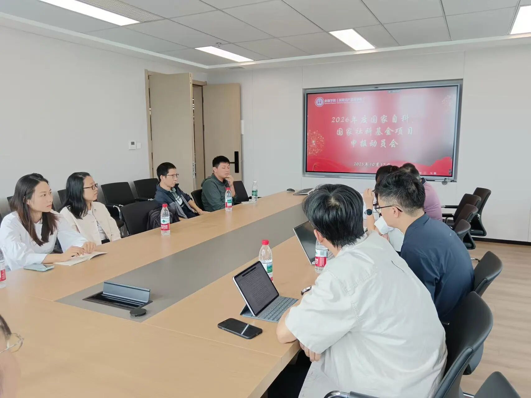 10月17日下午,金融学院召开2026年度国家社会科学基金和国家自然科学基金项目申报动员会,金融学院执行院长方霞教授主持了本次会议,学院副院长万谍教授及10余位教师参加了本次会议。