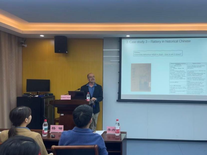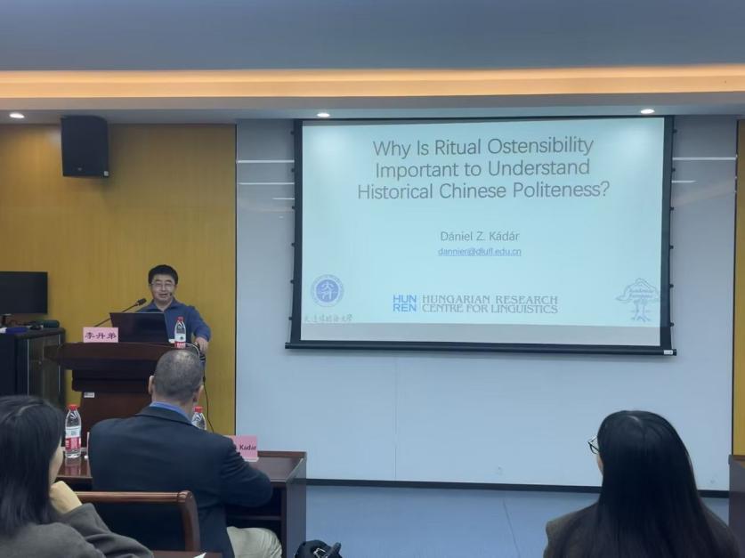 2025年11月4日下午,大连外国语大学启航外籍专家Dániel Z. Kádár教授应邀至浙江工商大学外国语学院讲学,讲座题目为“Why Is Ritual Ostensibility Important to Understand Historical Chinese Politeness?”。讲座由外国语学院院长李丹弟教授主持,全院硕士和博士研究生积极参与讨论,现场气氛热烈,学术氛围浓厚。
