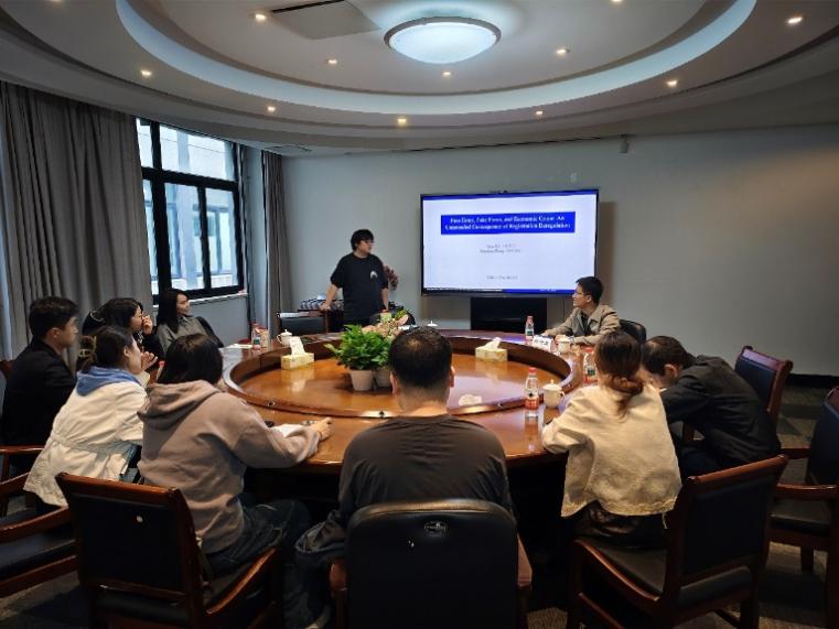 11月6-7日,应经济学院邀请,上海财经大学商学院铁瑛教授来经济学院进行学术交流,为申报2026年国家课题的部分老师进行一对一科研指导,并作了题为“Free Entry, Fake Firm, and Economic Crime: An Unintended Consequence of Registration Deregulation”的学术讲座,本次讲座由经济学院副院长诸竹君教授主持。