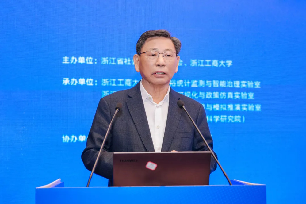 王永贵在致辞中表示,近年来,学校积极推动AI与哲学社会科学深度融合,成效显著。在服务国家战略层面,学校不仅成功推动“共同富裕统计监测与智能治理实验室”入选教育部哲学社会科学实验室,还作为浙江唯一代表入选商务部首批商业技术应用创新中心。在赋能教育科研层面,自主研发“商学智脑”大模型,并引进顶尖科学家、共建实验室和学院,系统性重塑科研生态。学校还通过夯实学科交叉融合的“新土壤”,凭借在工商管理、统计学等领域的学科优势,为AI与社科的深度融合提供了坚实支撑。
