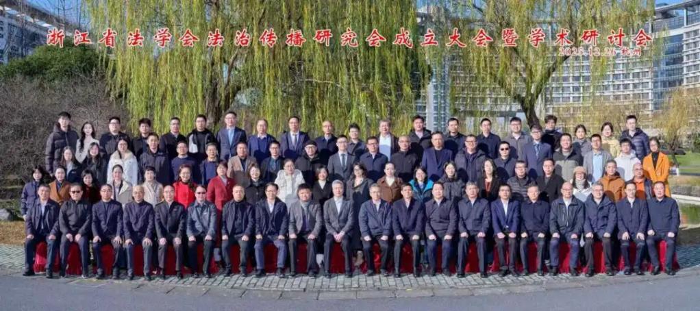 2025年12月26日,全国首家省级法治传播研究学术组织——浙江省法学会法治传播研究会在浙江工商大学成立。会议选举产生了首届理事会,浙江工商大学特聘教授陈东升当选浙江省法学会法治传播研究会会长,王水明、钱群、张雪南、章剑生、赵瑜佩等当选副会长。69名理事会成员涵盖浙江省内高校法学与新闻传播学学术带头人、中央驻浙及省市主要新闻单位业务专家、省内政法机关法治传播工作负责人等多领域骨干。