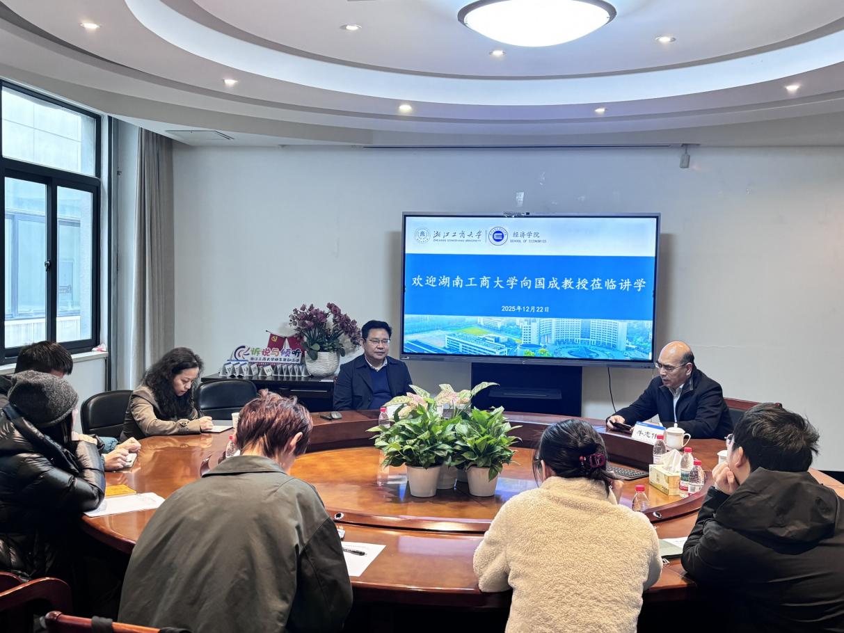 12月22日上午,应浙江工商大学经济学院邀请,湖南工商大学经济与贸易学院院长向国成教授作了题为“中国经济现代化道路的马克思主义广义政治经济阐释”的讲座,本次讲座由经济学院院长牛志伟教授主持。